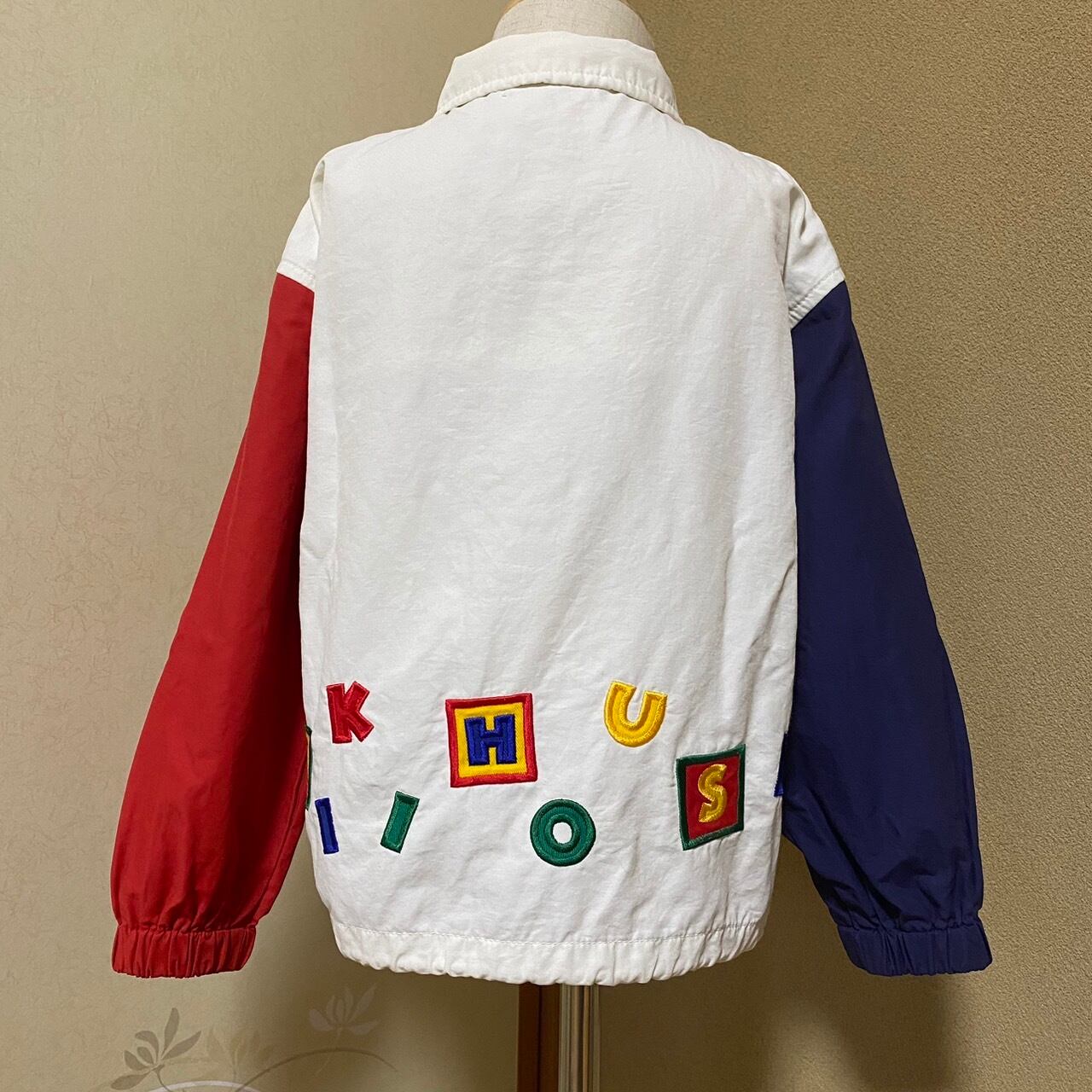襟付きのアウターです。ミキハウスの特徴である、左右違うお袖の色をしています。